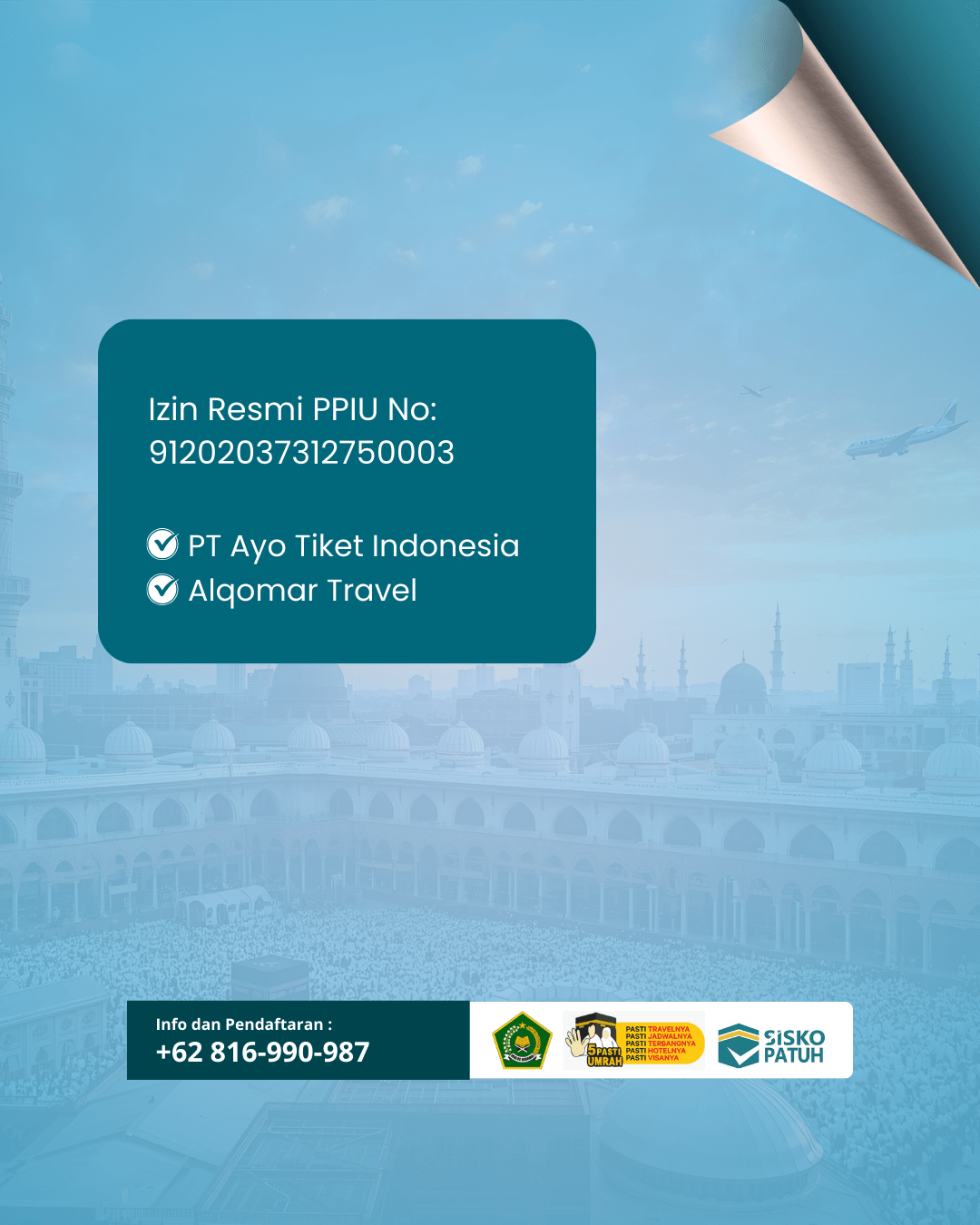 Terdaftar di PASTI Umrah dan SISKO PATUH — sistem pengawasan nasional.
